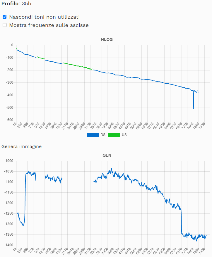 Dato che i tecnici m'hanno fatto vedere il grafico HLOG che gli usciva dal loro palmare, ne ho approfittato per chiedere informazioni sulla derivazione della mia chiostrina che non risulta però dal log e m'hanno riferito che alcune coppie sono state eliminate dalla derivazione tra cui quella che sto usando ora io (ora non so' il fondamento e la realtà di quanto m'hanno detto)