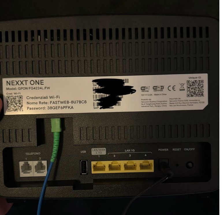 TheMarsican Niccolo05 so solo che mi devo prendere la scheda rete se è 2,5 g (quella del mio pc è max 1g). Per caso mi potete dare consigli? Cerca sul forum, ci sono un sacco di discussioni che parlano di quale scheda di rete scegliere. Lorenzo1635 Deve cambiare la CPE però visto che è in OS. Eh certo perché al massimo gli mandano il Nexxt One che ha solo la WAN 2,5G.