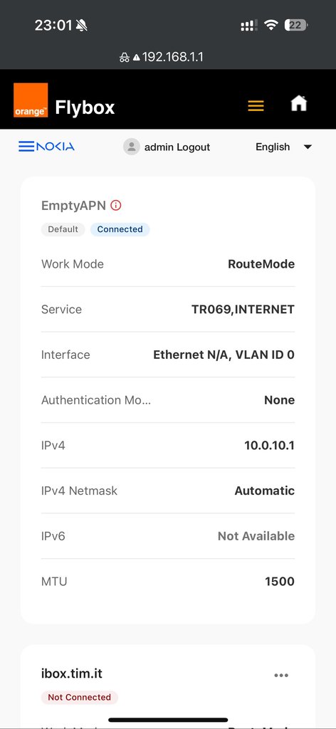 Se metto un sim italiana, al posto di orange viene scritto “EmptyAPN” non modificabile.