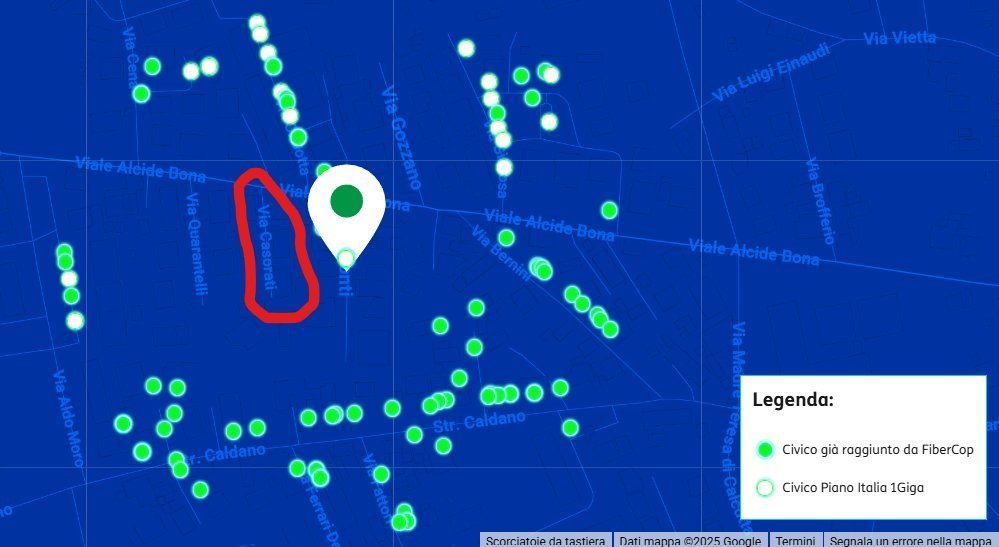 Come consigliato da @TheMarsican ho provato a segnalare il tutto a un responsabile Fibercop che il comune mi ha fornito ma a distanza di mesi non ho mai avuto risposta... magari il gentilissimo LoreBlack riesce a fare un controllo come ho visto in altre discussioni nel forum?