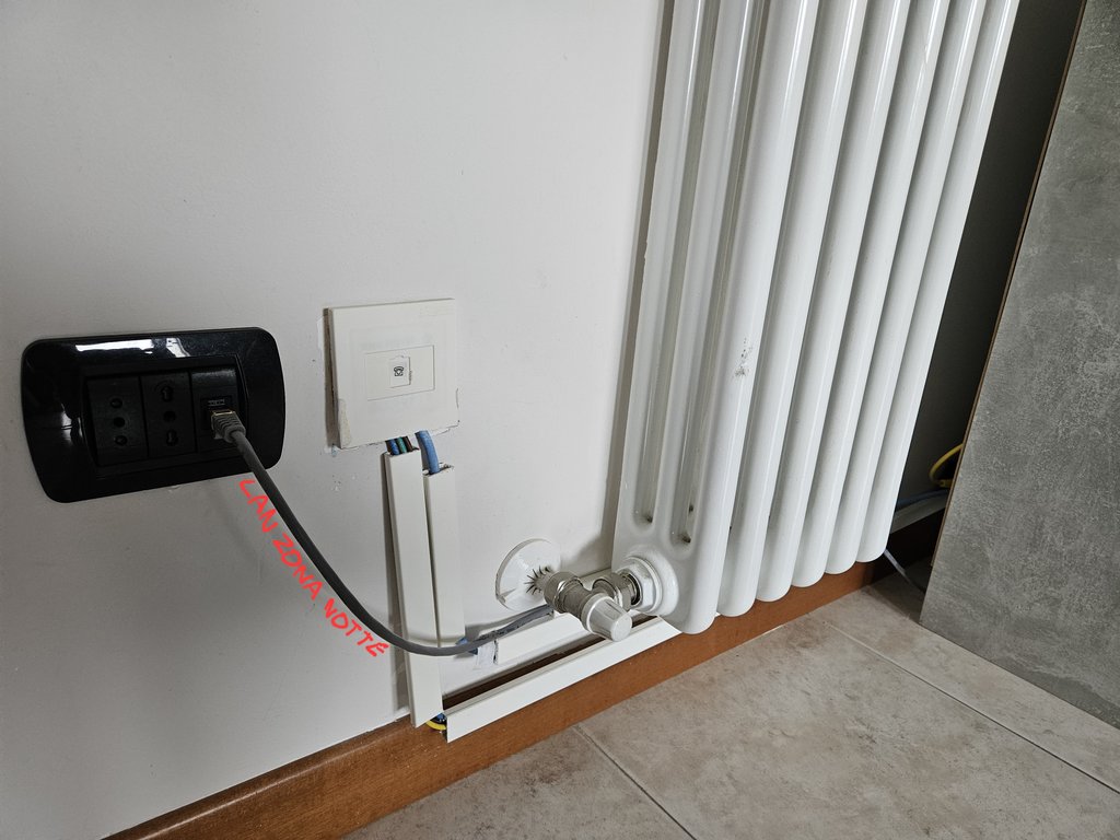 e questo è l'accrocchio che avevo fatto mesi fa il cavo grigio parte dal router entra nella presa rj45 e va a servire la zona notte dove ho scrivania e PC poi il cavo blu arriva dall'antenna sul tetto e mi da internet in FWA ho dovuto spaccare un pezzetto di presa telefonica per farlo passare e poi gli altri sono cavi elettrici che vanno a finire in una presa volante che ho messo io dietro il mobiletto insomma un lavoraccio nn tanto bello oltretutto con le canaline che si staccano nn mi piace molto.