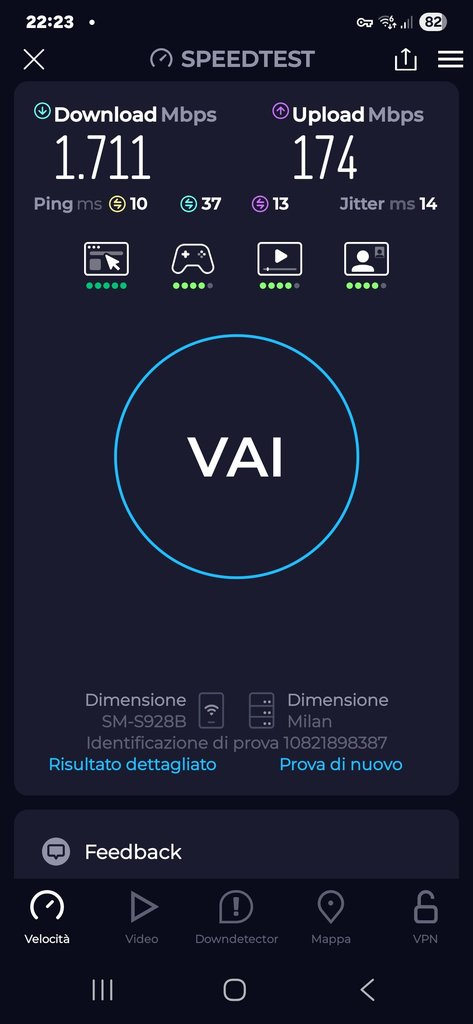 In passato in wifi saturavo sempre la banda invece al pc in cablato in upload si satura sempre la banda invece in download sempre una media che va tra i 700 e i 1.100. Pochissime volte sono arrivato con l'adattatore tra i 1800 e max 2000