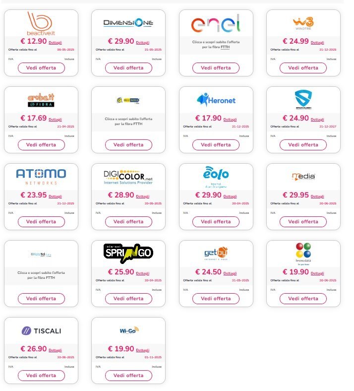 Di quei provider molti a me sono sconosciuti a parte Dimensione, Wind3, Tiscali ed Eolo (e Enel che vabbè non sapevo nemmeno facesse offerte per la fibra).