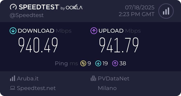 Non sono tutti così gli speedtest, devo capire se le fluttuazioni sono fisiologiche della linea o se dipendono da altri fattori, ma il potenziale per il Gb pieno c'è.