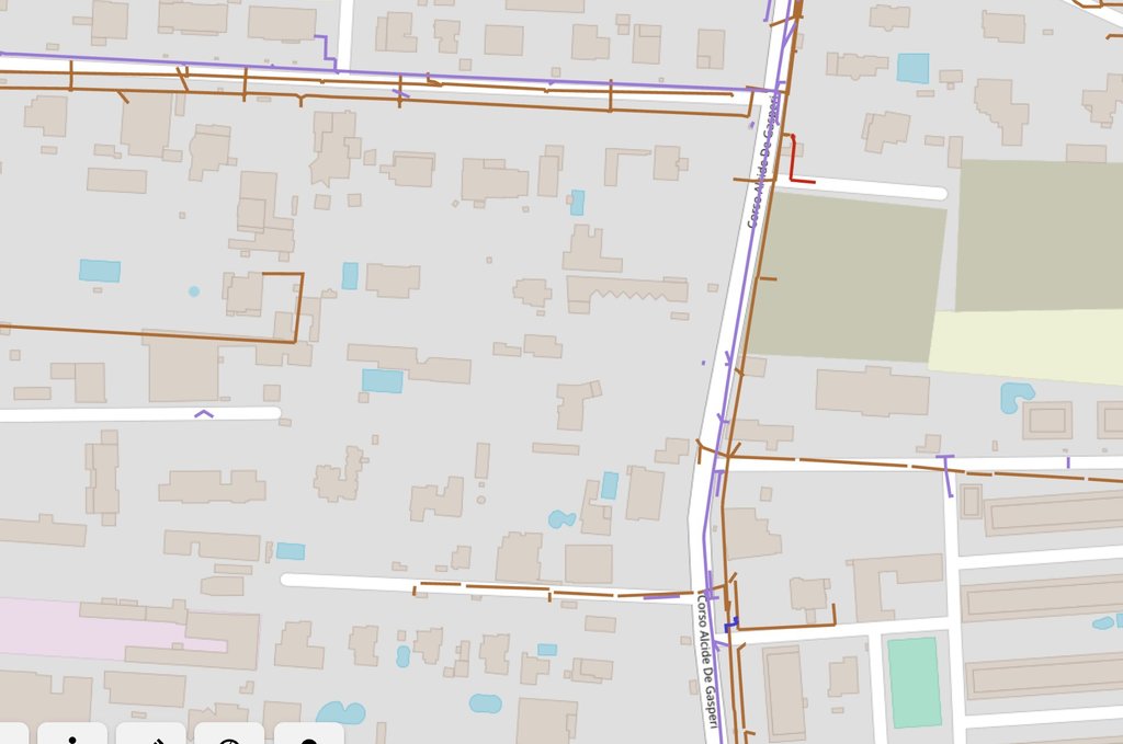(in violetto tratta OpenFiber, marroncino Fibercop, rosso Fastweb, blu scuro Vodafone)