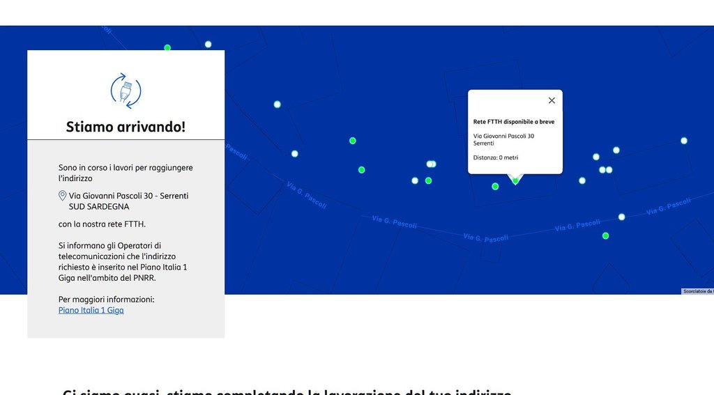 Al momento sul sito fibercop il mio indirizzo risulta come "Stiamo Arrivando!"