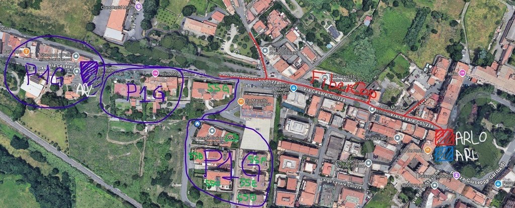 Ho fatto un pò di ricerche e sono venuto a capo che nel P1G ci ricade il comprensorio dove vivo e tutte le altre case cerchiate in viola. La palazzina al 55G purtroppo non riesco a individuarla sui soliti tool, poichè è di nuova costruzione.