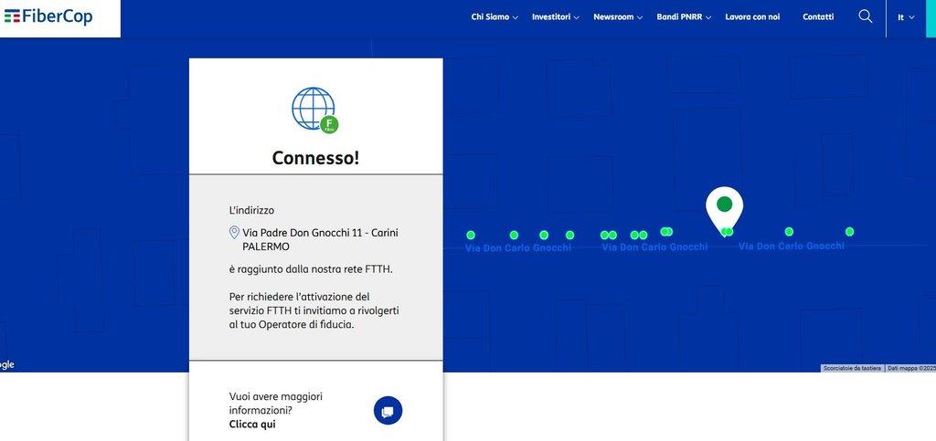 La fibra non è disponibile al mio numero civico 13; i vicini di casa al numero 9, 11, 14, 16, 8, 18 ed atri hanno la fibra (vedasi foto). Specifico che il no. 11 è l'abitazione di fianco e le no. 16 e 18 di fronte.