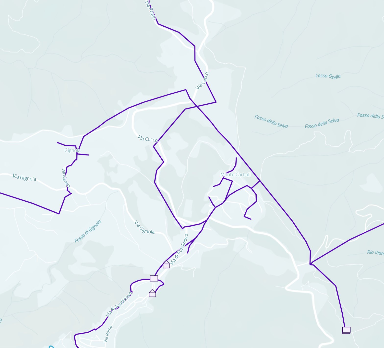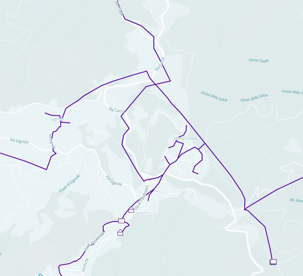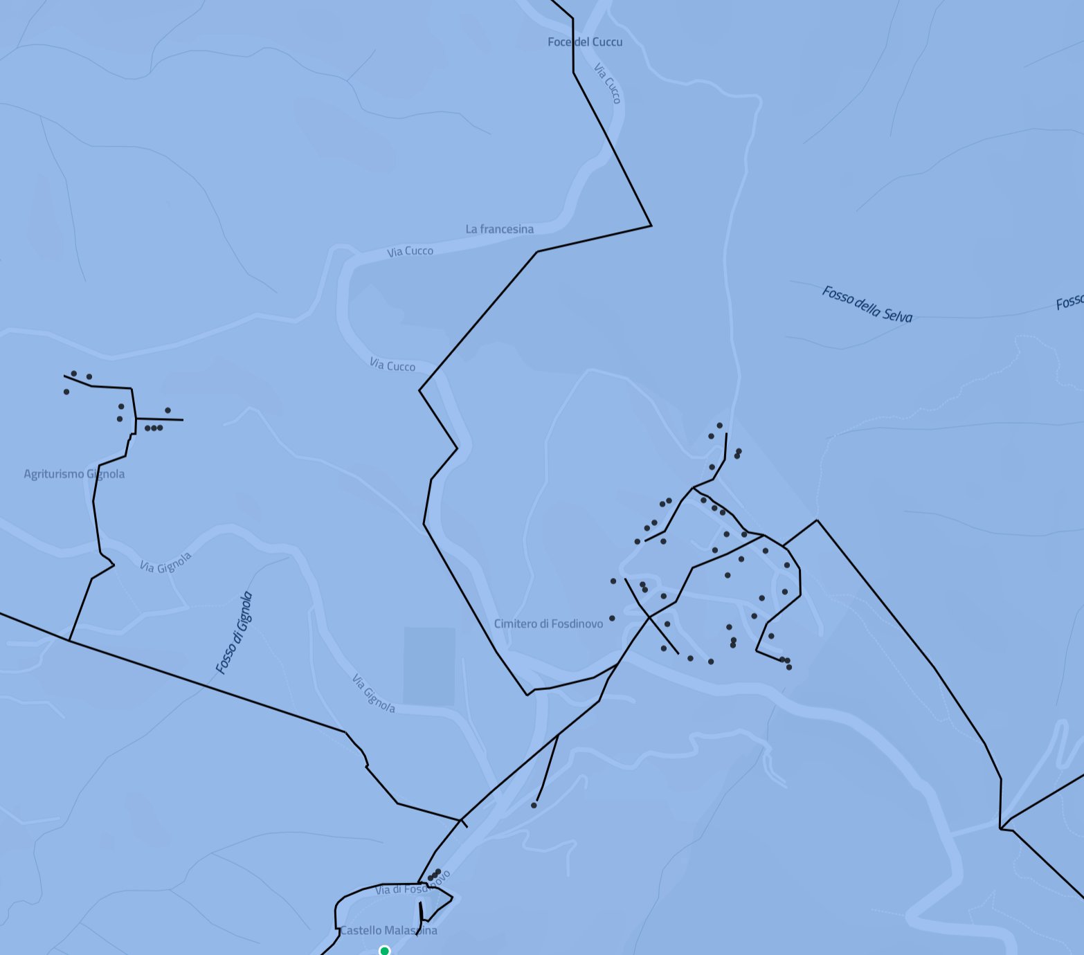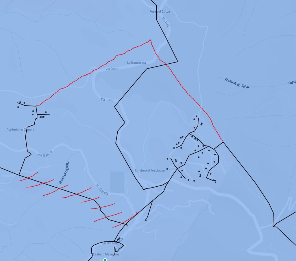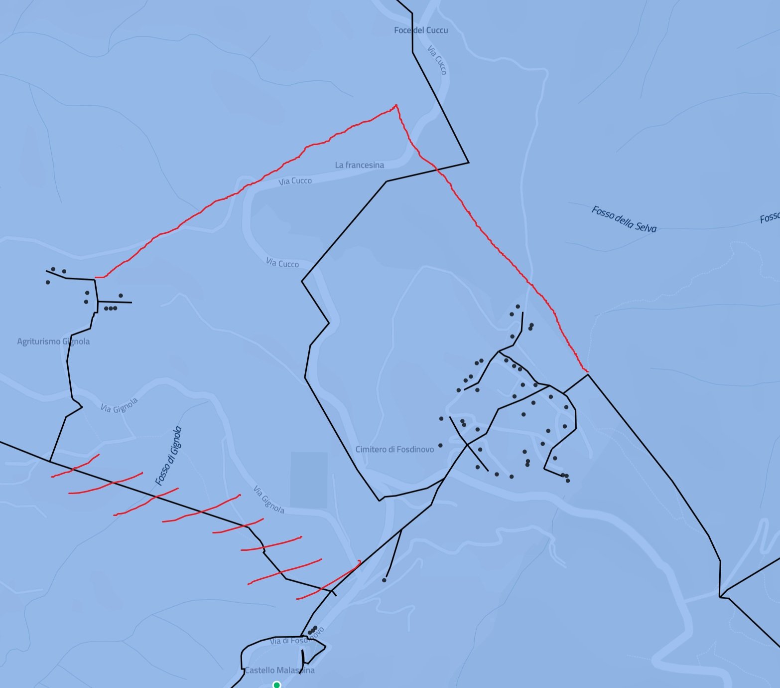 Comune di Fosdinovo, FTTH BUL in fase (teoricamente) di collaudo, noto questa differenza nel tracciato fra il sito BUL e il sito Webgis