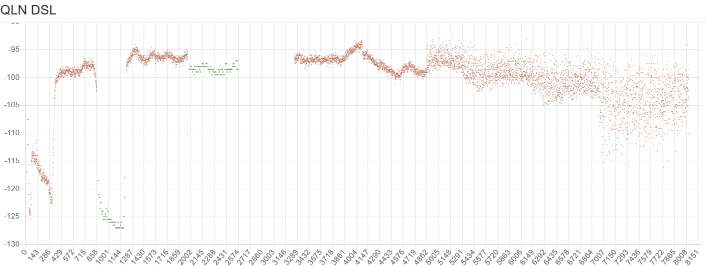Filippo94 panasonic83 prima cosa che mi viene in mente vedendo il grafico: venerdì pomeriggio, pronti per il weeeknd fuori, spegnimento di alcuni modem con risultato minor rumore e si riesce ad agganciare di più.