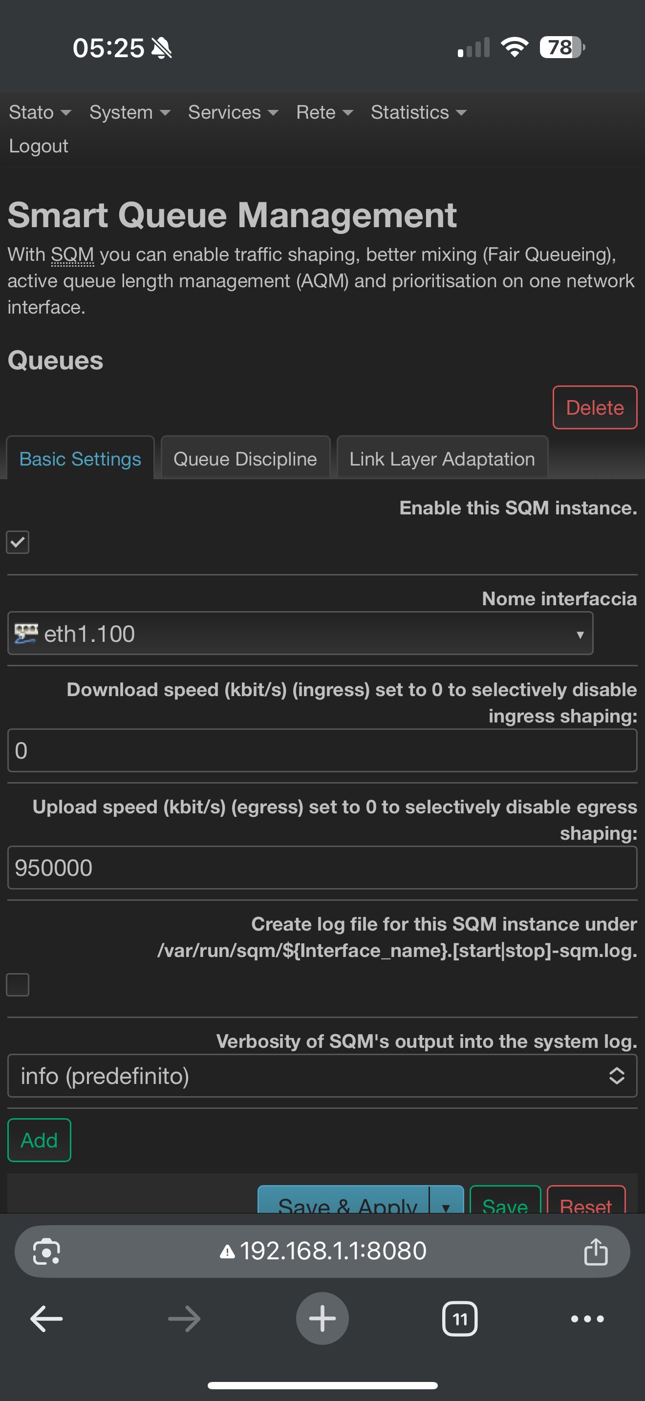 Successivamente ho provato ad abilitarlo anche per il download ed è peggiorato ulteriormente.