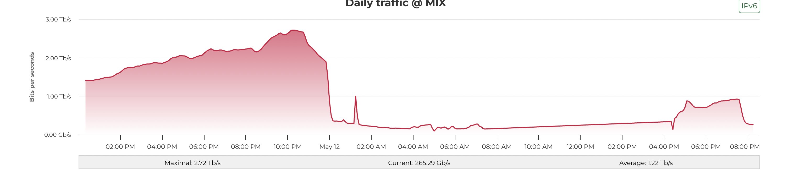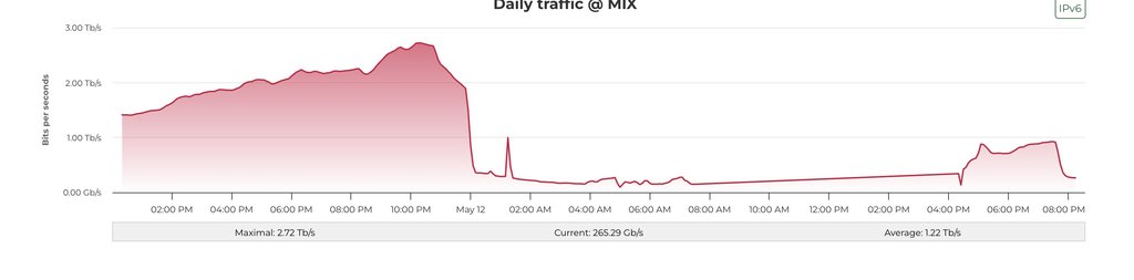 danny20091989 Al momento dagli RS di MIX riceviamo 61968 rotte quindi direi che quasi tutti hanno ritirato su le sessioni. Le uniche sessioni che abbiamo ancora down sono OVH, AT&T e HE, probabilmente non le hanno ancora riattivate Considera comunque che il grafico non è in realtime, al momento è quasi a 1 TB, segno che la situazione sta tornando alla normalità