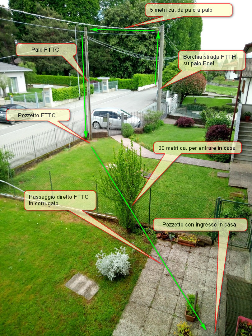 Avevo giá pensato a collegare dalla discesa enel al pozzetto telecom via terra ma non voglio recare disturbo agli altri. Sono pensionati e non sono interessati.
