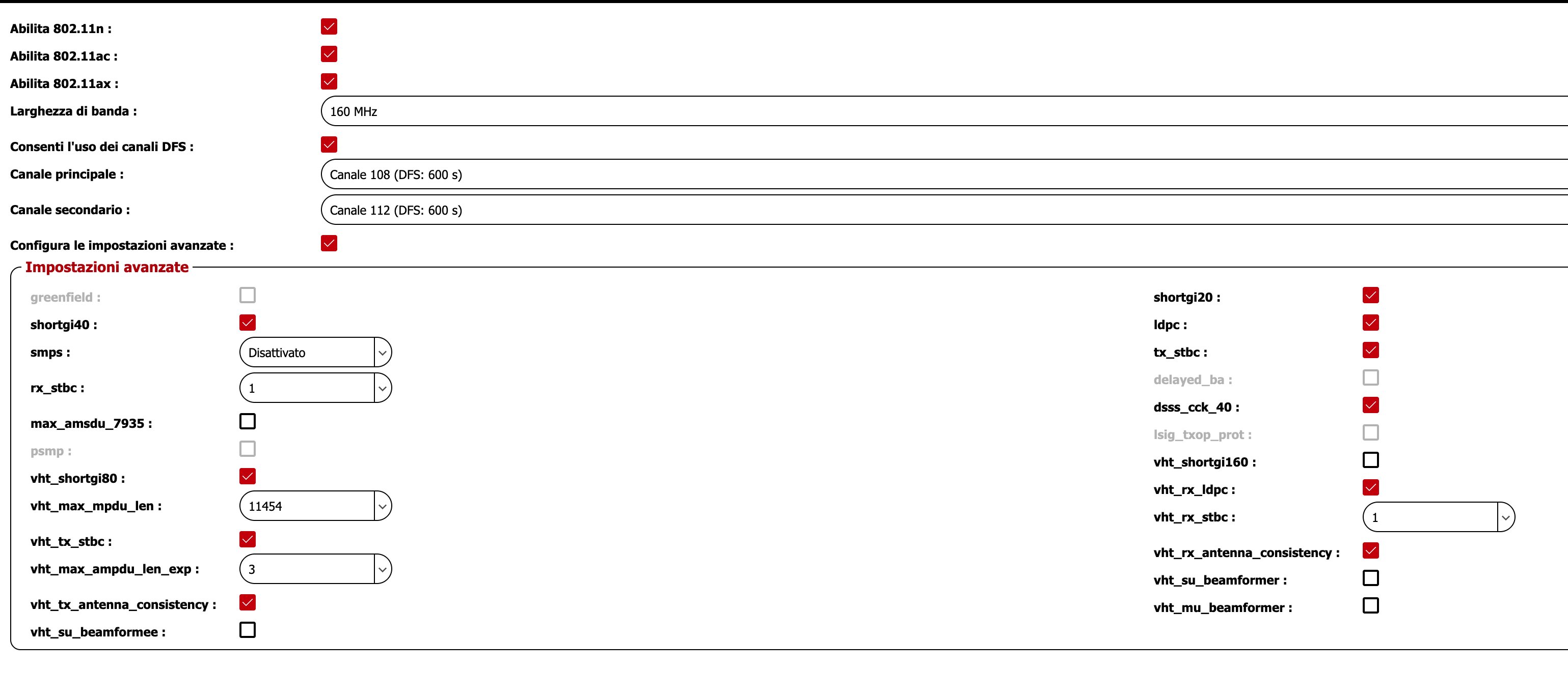 vht_mu_beamformer (Beamforming Multi User): Il router ottimizza contemporaneamente verso più client, disponibile solo in MU-MIMO (802.11ac Wave 2 e 802.11ax).