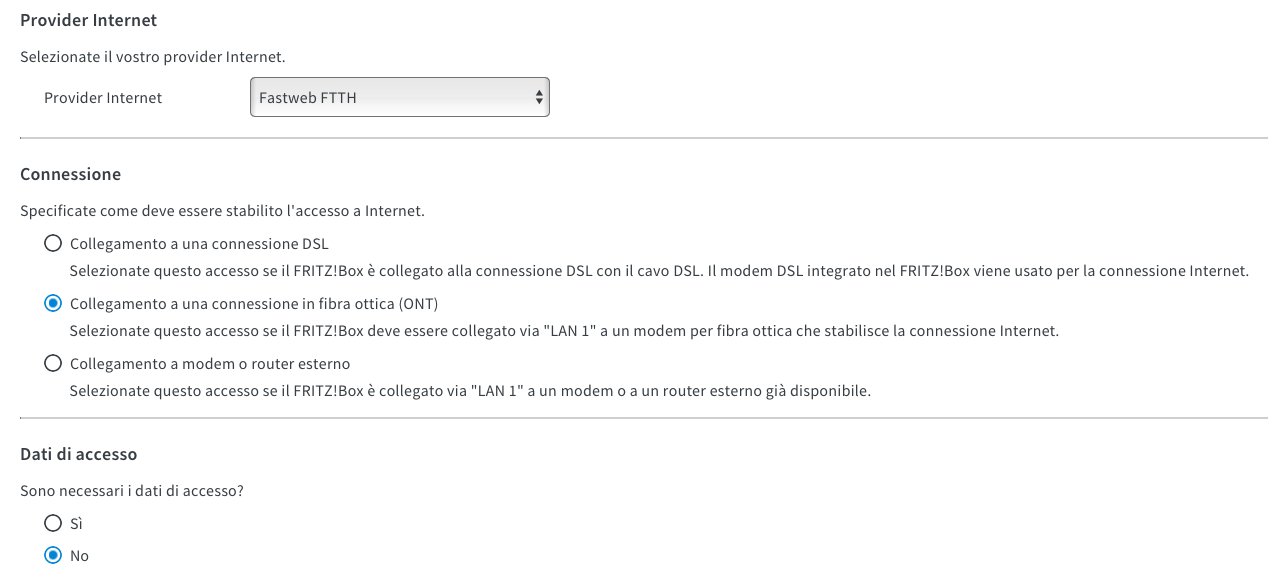 Salve a tutti, sono finalmente riuscito a far funzionare il mio Fritzbox 7530 con Fastweb FTTH senza l'intervento dell'operatore.