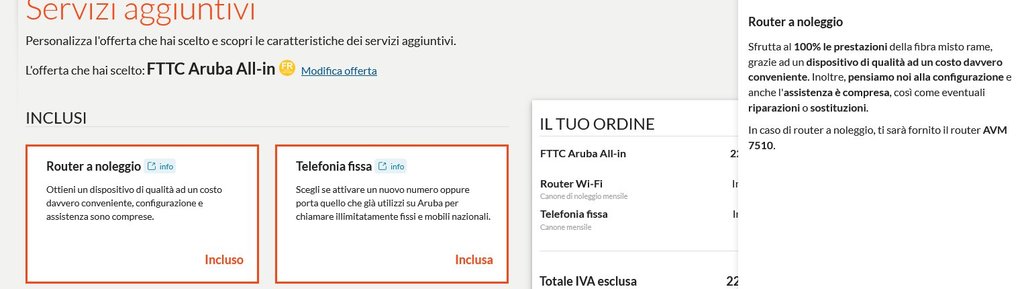 FehLaFra Buongiorno a tutti, sapete quale modem viene attualmente fornito da Aruba per le linee FTTC? Ho appena sottoscritto un contratto e sul sito vengono indicati alcuni modelli disponibili a seconda della tecnologia, ma da alcune discussioni ho capito che non sempre viene inviato quello riportato online. Qualcuno che ha attivato di recente può confermare quale modello ha ricevuto? Grazie in anticipo a chi vorrà rispondere!