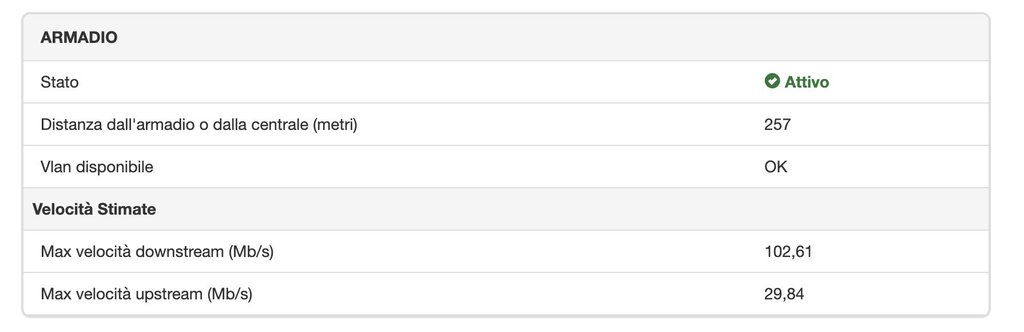 comunque al momento presente solo FTTC 200, cabina ARL a circa 250mt