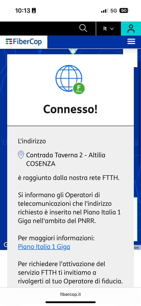Speravo di creare presto un post di aggiornamento per avvenuta attivazione della fibra a casa di mia mamma (in campagna) dopo aver seguito i vostri preziosissimi consigli ed essere riuscito a far rientrare il civico nel piano italia 1 giga.