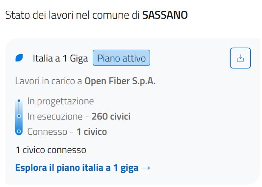 Potete confermarmi che se c'è scritto questo sul sito connettiitalia il progetto è già stato approvato e siano anche iniziati i lavori? Perchè ho provato a chiedere in comune e ovviamente mi hanno liquidato dicendo di non sapere nulla...