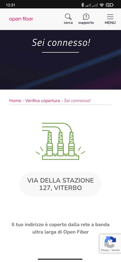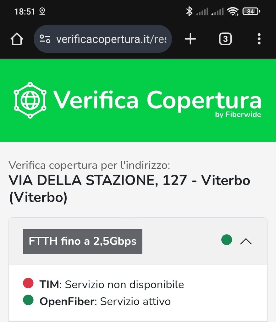 Sul sito OpenFiber il mio indirizzo risulta coperto anche se Tim non ha ancora la vendibilità.
