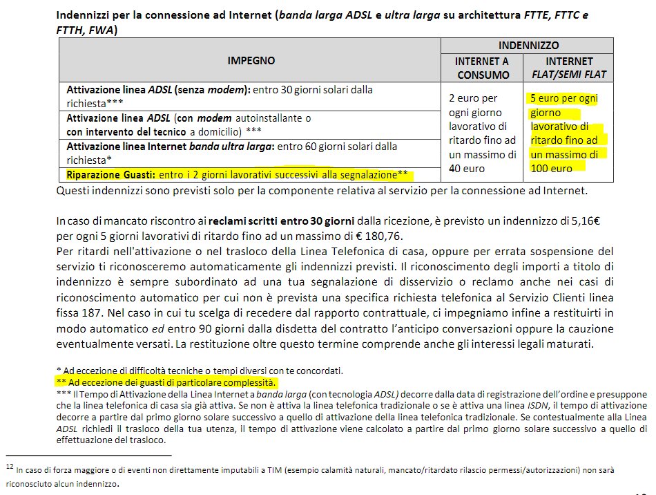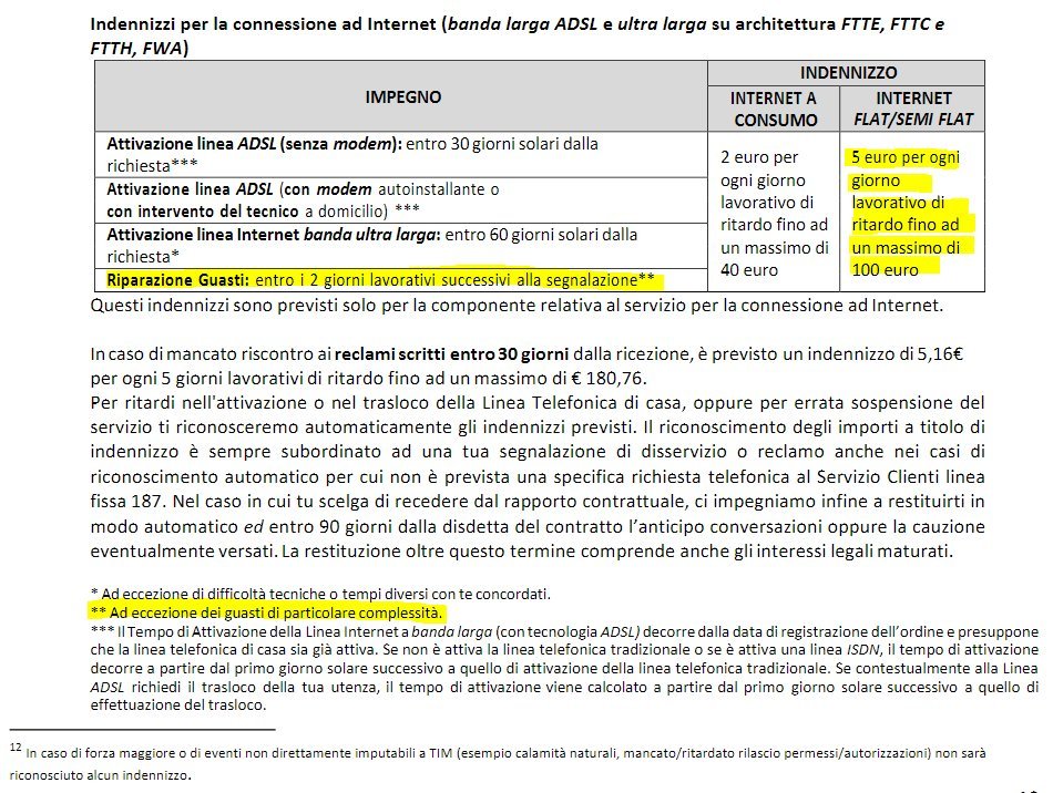 No, al massimo puoi chiedere l'indennizzo come previsto da Carta dei Servizi Tim: