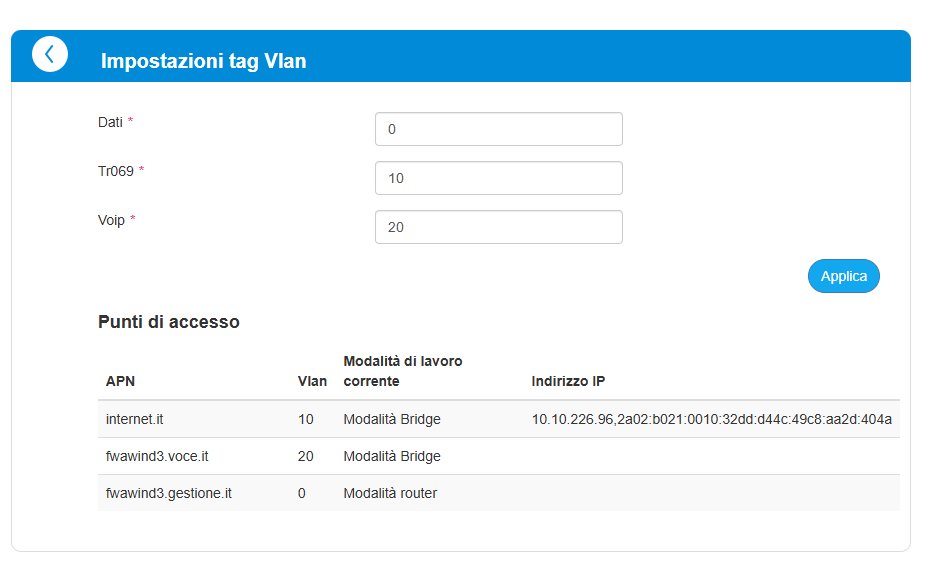 nicograndi86 ho salvato e riavviato e ora finalmente ha messo la VLAN a 0 sui dati e anche se in maniera instabile, naviga. test fatti al chiuso senza pretese, stasera proverò dalla postazione all'aperto a casa e ti farò sapere, grazie
