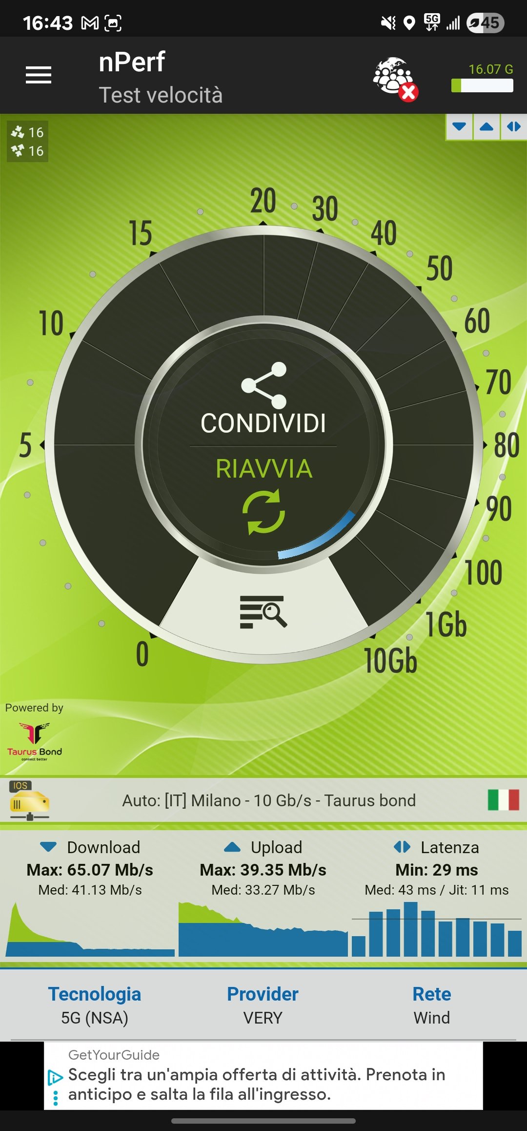 nicograndi86 pgxx sono connesso in 5g, ma allo speed test dopo.un primo picco si assesta tutto sui 30 mega (ho antenna wind a 150mt)