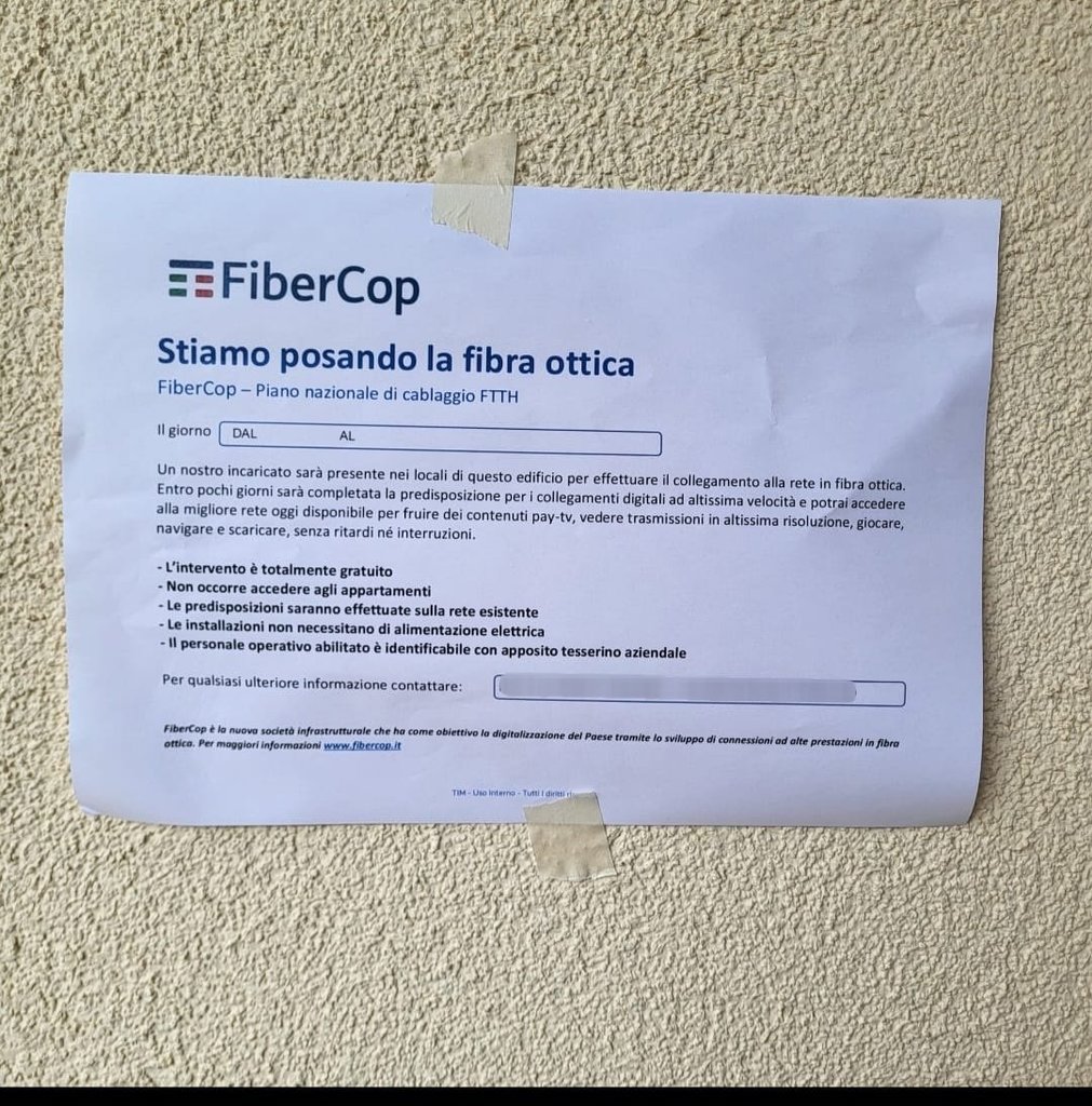 Noi siamo già coperti da Fibercop da piu di un anno, e sono stato uno dei primi del mio civico ad avere la FTTH che sta tutt'ora funzionando.