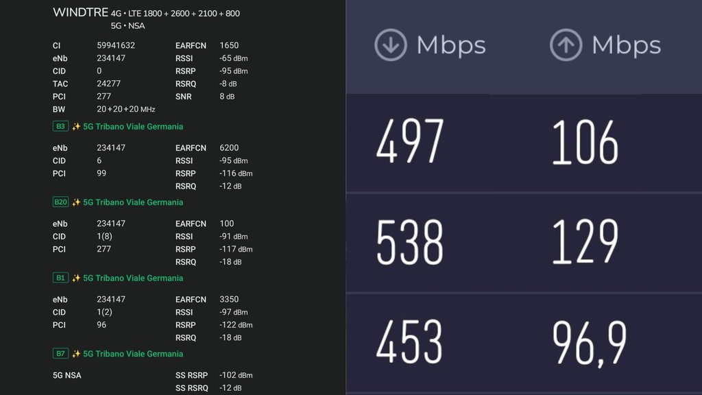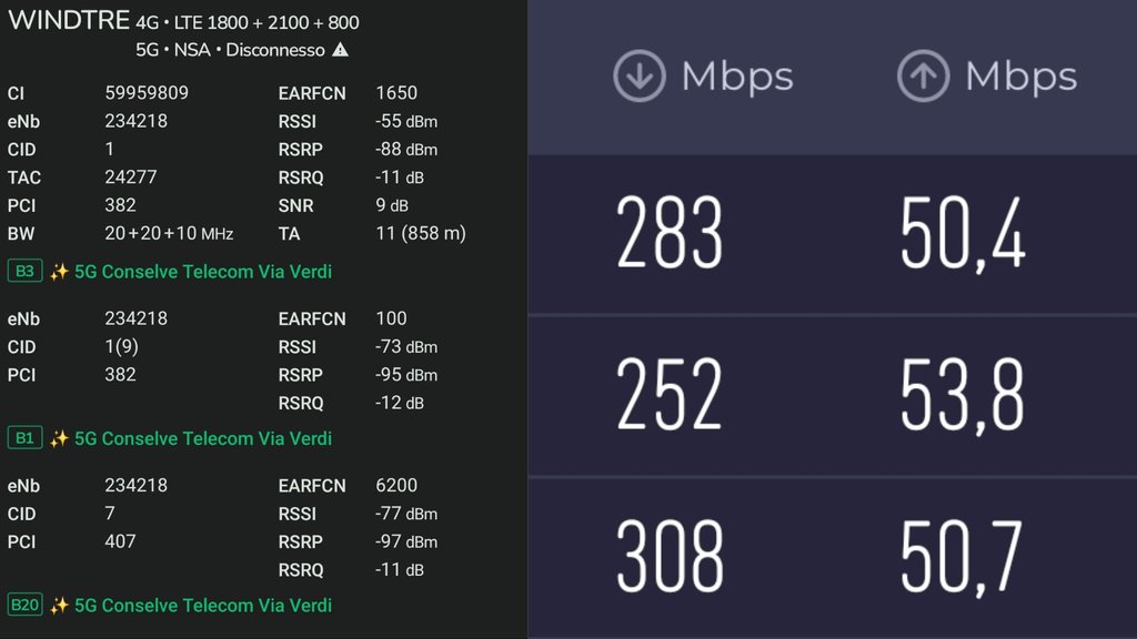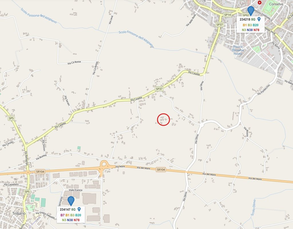 Facendo dei test col 5G del telefono in vari punti della casa, la BTS di conselve mi dà questi risultati
