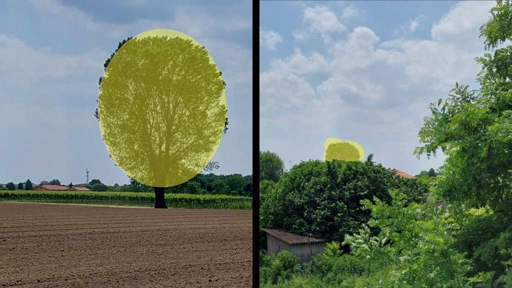 Per questo vorrei agganciarmi alla BTS di tribano, che vedo dai campi, anche se da casa è nascosta da 2-3 alberi. (l'albero giallo lo vedo da casa)