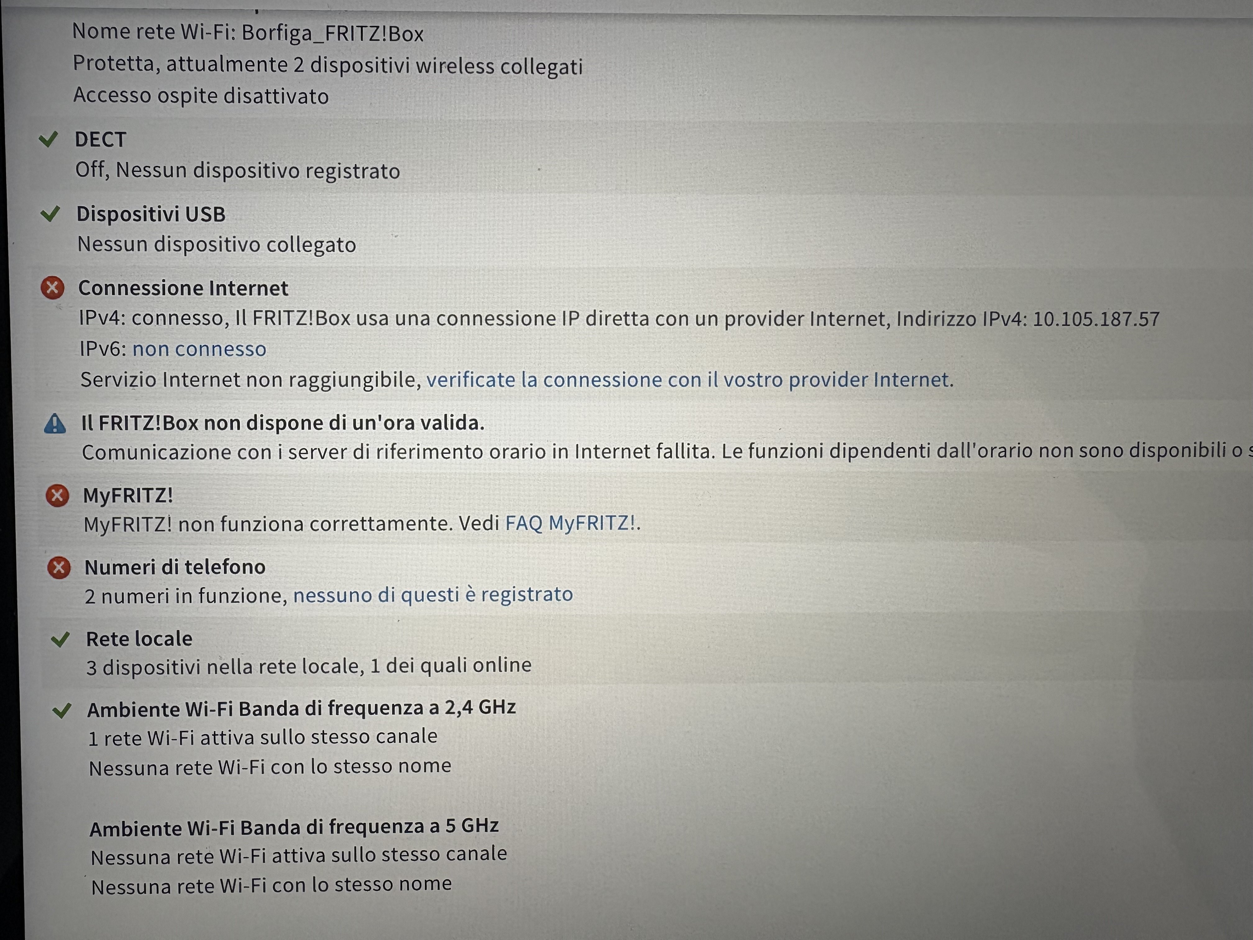 Ho fatto vari tentativi e ad un certo punto la portante (non so se si dice così), il router l’ha agganciata con tanto di pallino verde su adsl ma poi non ha la rete Internet per navigare.