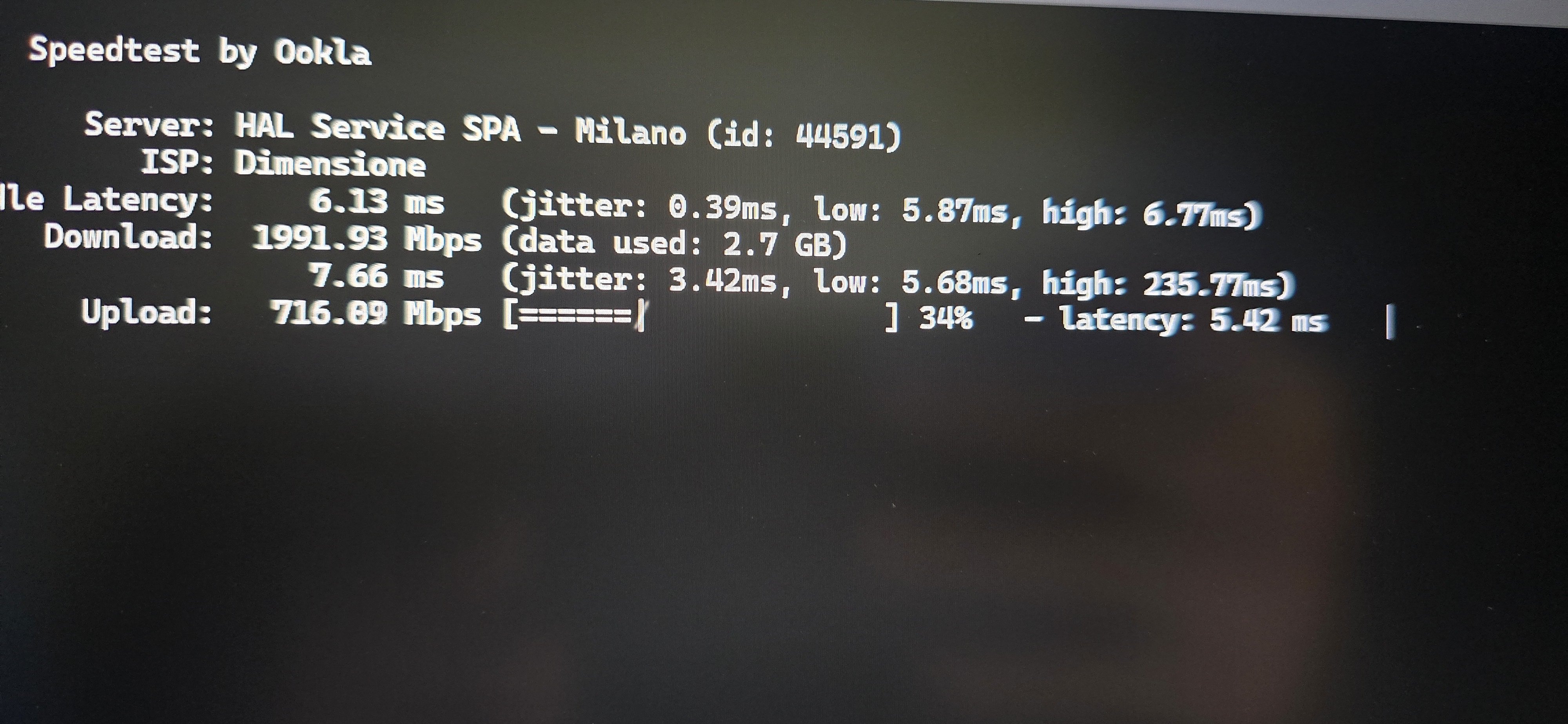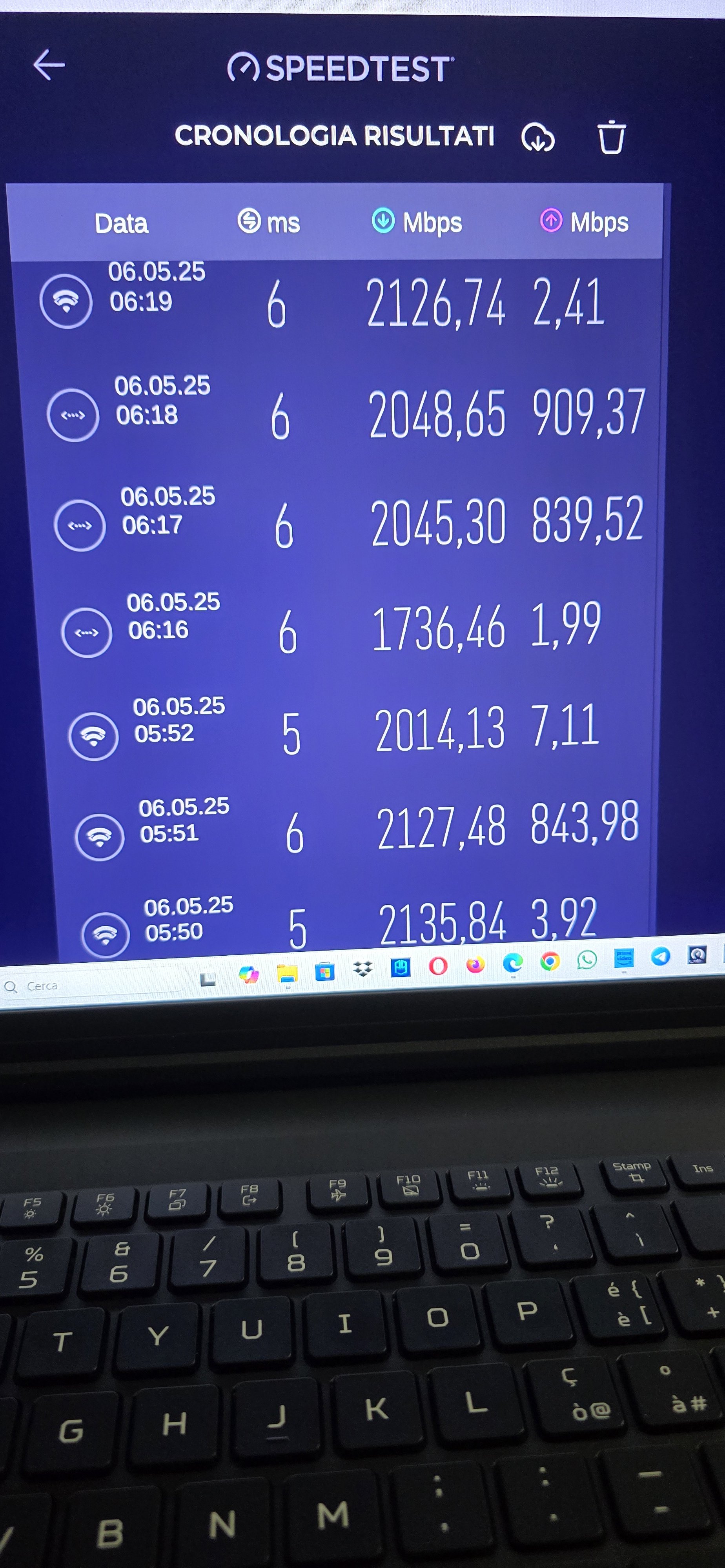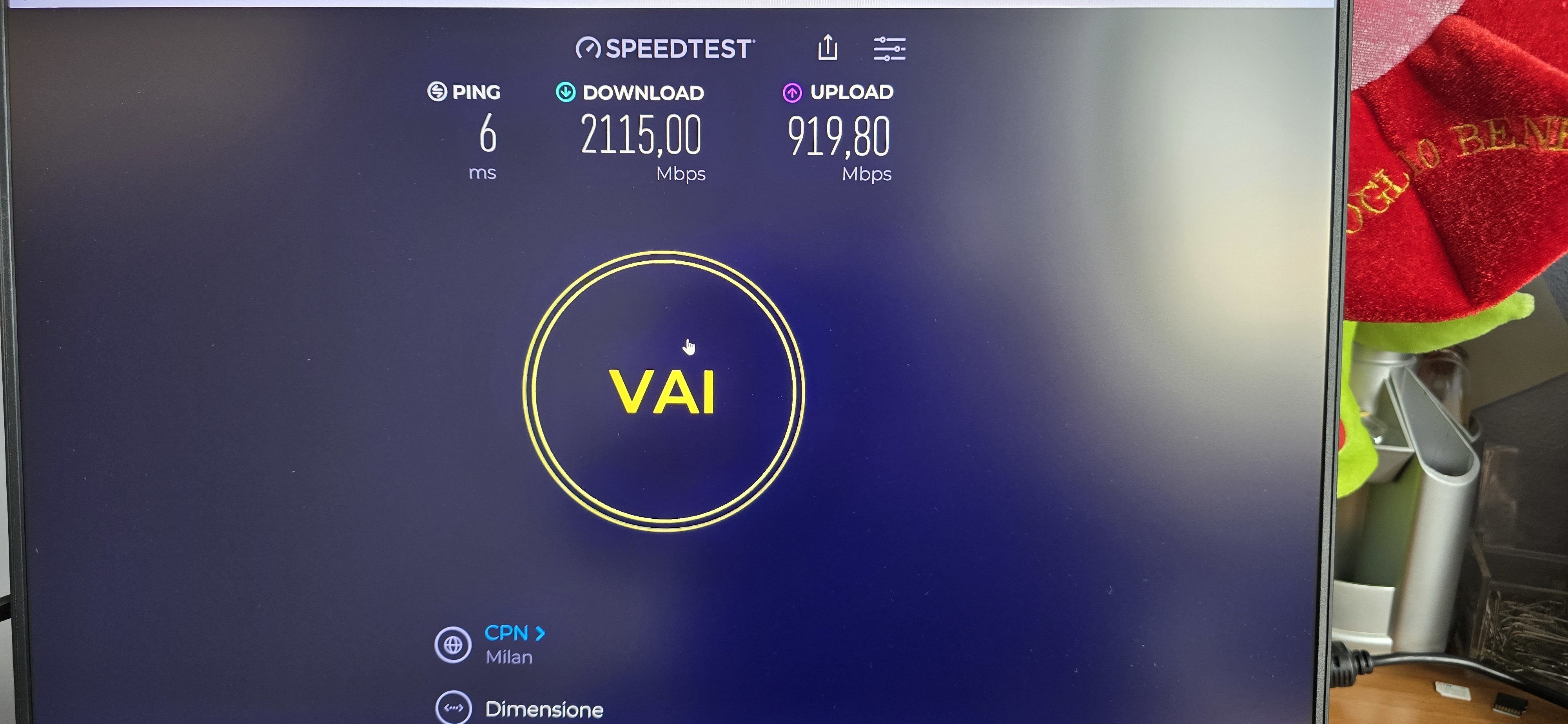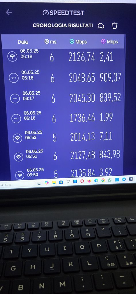 amajelli Salve, ho acquistato un nuovo pc top di gamma acer predator helios 18 AI ed ho notato che alcuni server su Milano mi danno dei problemi con l'upload invece su altri non succede. Invece in wifi con lo smartphone ho visto anche là un abbassamento dell'upload che si attesta intorno ai 200 mbps. In download dà il massimo continuamente non capisco perché adesso succede questo che prima non accadeva. Allego alcuni test effettuati.