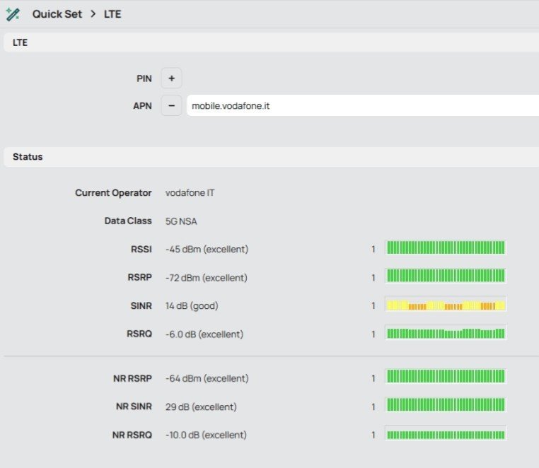 Dopo un mese di utilizzo posso ritenermi molto soddisfatto, per l'istallazione è infatti bastato il quick set disponibile su routerOS (con l'unica accortezza di disattivare "use network APN" come suggerito nei video di Cariola che non conosco ma ormai è come se fosse un amico). Aggiornare tutti i firmware e moduli è semplice ed intuitivo, cosi come impostare apn. Altro non ho toccato. Sono riuscito ad agganciare in 5G una BTS visibile ben più vicina a 1,7km che LTE italy non riportava con N78 ed avevo quindi scartato in precedenza (uso sim fisica vodafone). A valle del router c'è un Tenda MX12 usato come AP con il quale vedo e gestisco i vari dispositivi collegati. Gli speed test, collegato in wifi6 con uno smartphone, portano ottimi risultati con massimi di 818Mb in download, media di 700Mb e minimi di 488mb (più stabile il ping sui 23 e l'upload sui 130mb). Non so da cosa possa dipendere, varia anche di ora in ora, forse dalla BTS o forse dallo smartphone, dai server ookla, dal tenda AP o addirittura dal cavo ethernet crimpato da me? Insomma immagino non dal router Mikrotik. Comunque il segnale nei dispositivi è sempre stabile e veloce con nessun problema su caricamento video 4k, streaming e altre attività del genere. Allego screenshot di qualche speedtest e il segnale della BTS. Sarà forse sprecato per chi non è in grado di smanettare con le impostazioni e non potrà tirare fuori il meglio dal router per una rete magari complessa ma per chi cerca una soluzione con antenna forte il quick set funziona e penso sia un buon acquisto. Per chi invece avesse qualche semplice suggerimento per ottimizzare qualcosa... vi leggo, grazie!