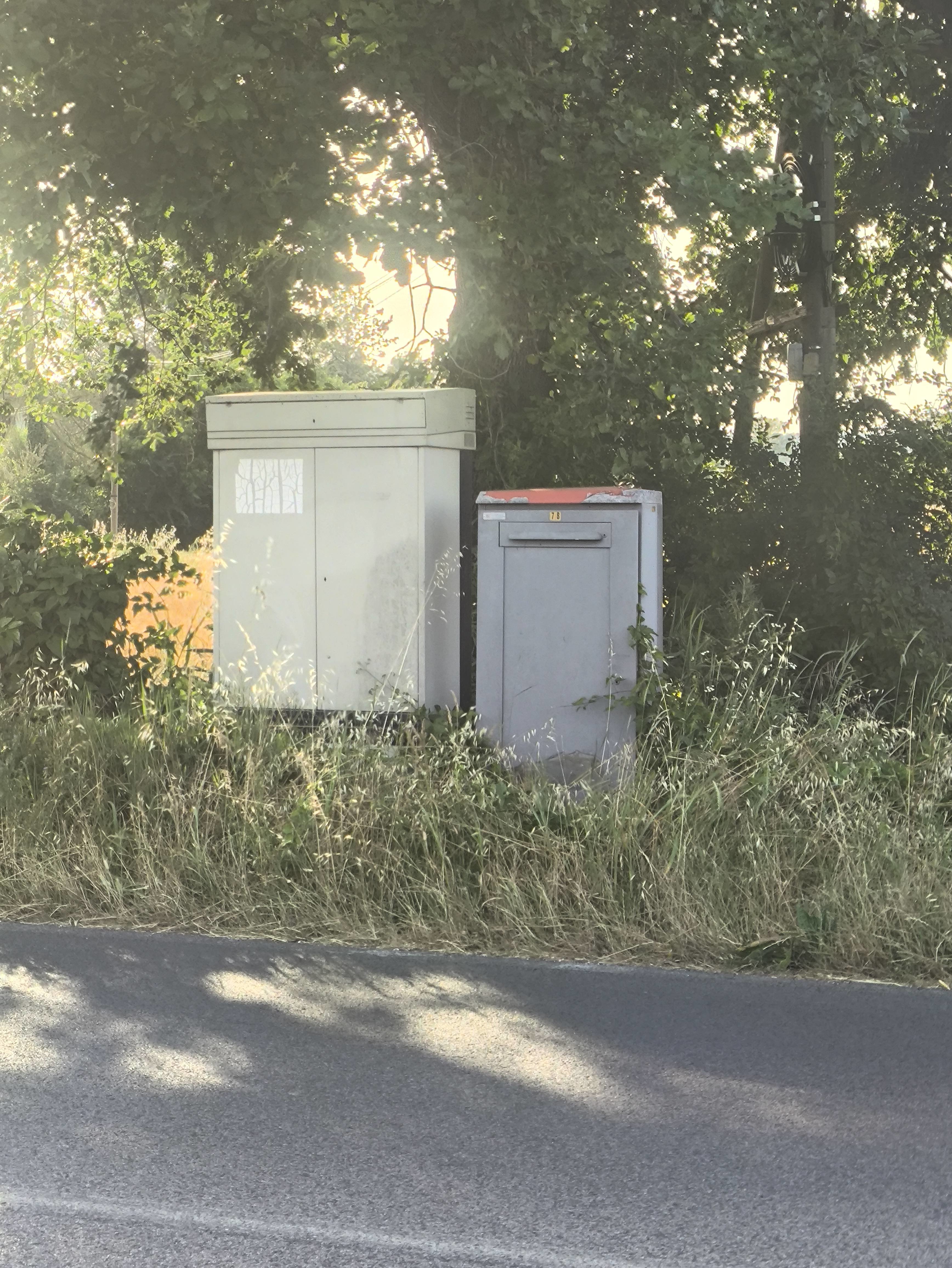 Andando dal mio civico fino all'inizio della via non mi sembra di aver visto nessuna scatoletta, le uniche cose che ho trovato sono quelle in foto.