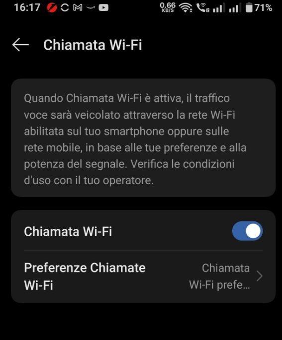 _Lex_ AlbertoScarpellini non devo vedere scritto in altro la sigla VoLTE sopra i simboli di quanto prende il telefono Non necessariamente 😉 GMA devi controllare che rimanga il simbolo 4G o 5G mentre fai una telefonata. Per il VoWIFI di solito va abilitato perché di default é settato su "rete cellulare preferita" e si attiva solo se il segnale cellulare é molto basso o assente. Quoto. In ogni caso se il VoLTE è ok lo è pure il VoWiFi.