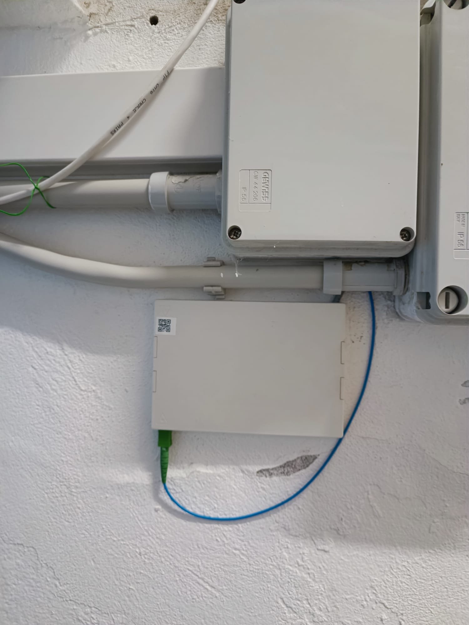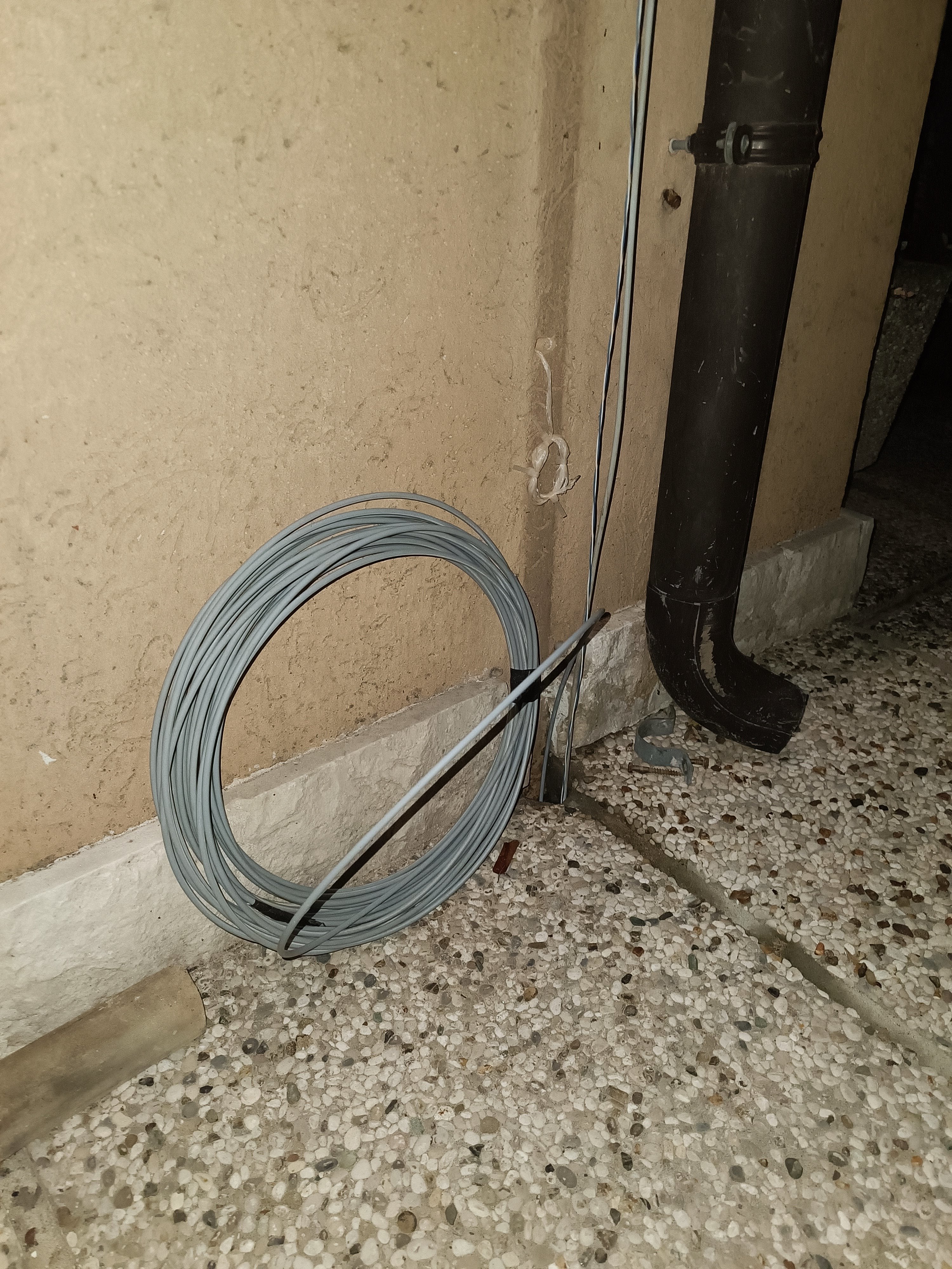 Fun fact, siccome la scorta che avevano lasciato non arrivava fino al rack, ci siamo fermati con la borchia ottica appena dentro la lavanderia/magazzino (come si vede dalla foto precedente), e poi uno dei due tecnici aveva un patch da 10 metri che mi hanno passato già nella canalina per arrivare fino al rack dove è stato messo l'ont (la tratta era di 5 metri poi sistemo e tengo arrotolato nella scatola sopra il rack tutto l'extra di fibra), alla fine del check avevo una attenuazione di -19db mi pare si dica così, mi sembra un ottimo valore da come ne parlavano.