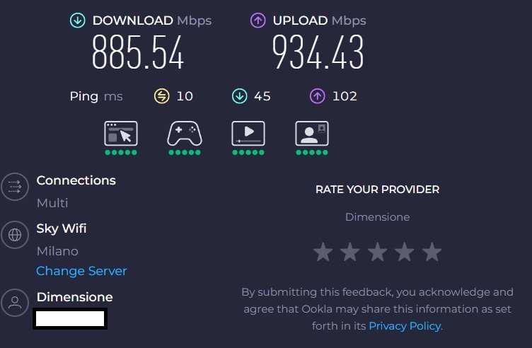 Ho fatto il test di velocita sul server di Ookla e mi ha dato questo risultato sul ping.