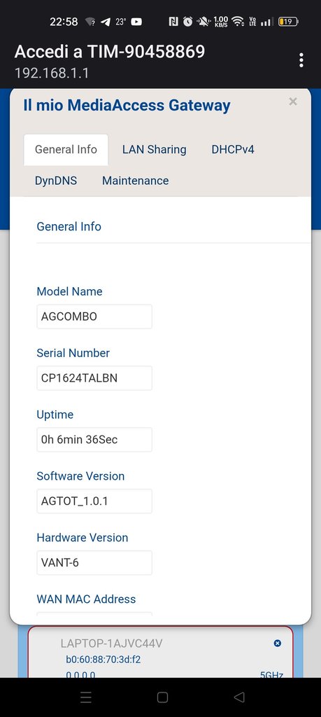 Vi lascio alcune immagini del modem e delle versioni software.