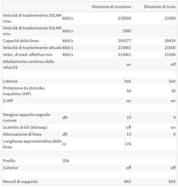 in attesa di completare l'attivazione della FTTH (sono solo 6 mesi che combattiamo con problemi di scavi in strade private, ecc ecc) tornando dalle ferie ho trovato una spiacevole sorpresa sulla FTTC TIM che vorrei sottoporvi. La linea è sempre andata molto bene, a parte qualche problemino iniziale, rimanendo sempre sui 190Mbit/s in download e 20 Mbit/s in upload. Oggi rientrando a casa mi sono accorto che la situazione è la seguente: