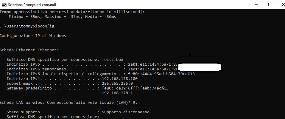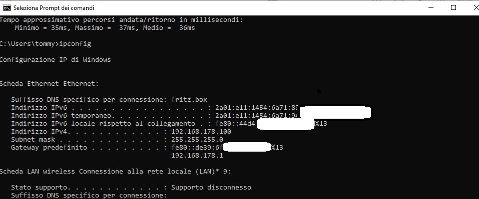 La configurazione mi sembra corretta e facendo Ipconfig mi trovo indirizzi che mi sono stati da ti da Iliad.