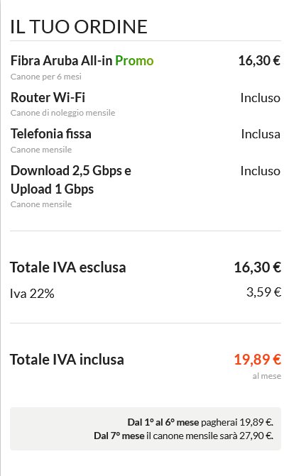 alexio78 Stavo pensando di passare ad Aruba Fibra in quanto la tariffa mi pare buona ed inoltre con solo 20 euro si può migrare in qualsiasi momento nel caso ci siano problemi.