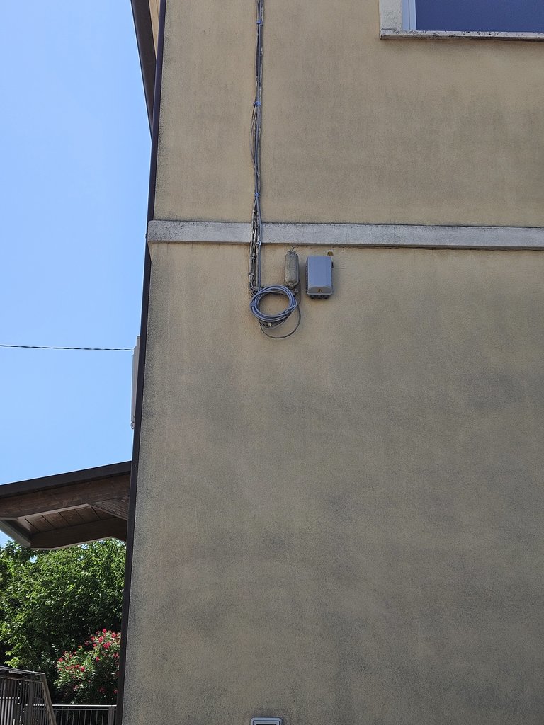 Ieri due tecnici della Valtellina hanno portato il multifubra aereo, seguendo la secondaria in rame, internamente alle proprietà private, con l'installazione dei PTE.