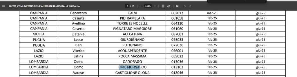 Buon pomeriggio a tutti, il mio Comune ( Fino Mornasco, CO ) risulta in questa lista come coperto da FWA Gigabit ma su nessun sito di nessun operatore, nè dello stesso OF, viene data quell'opzione.