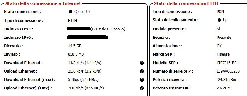 Tempo che si riassesta la connessione, rilegge il valore a -23dB da cavo, mentre dentro alla iliadbox segna -24.5dB.