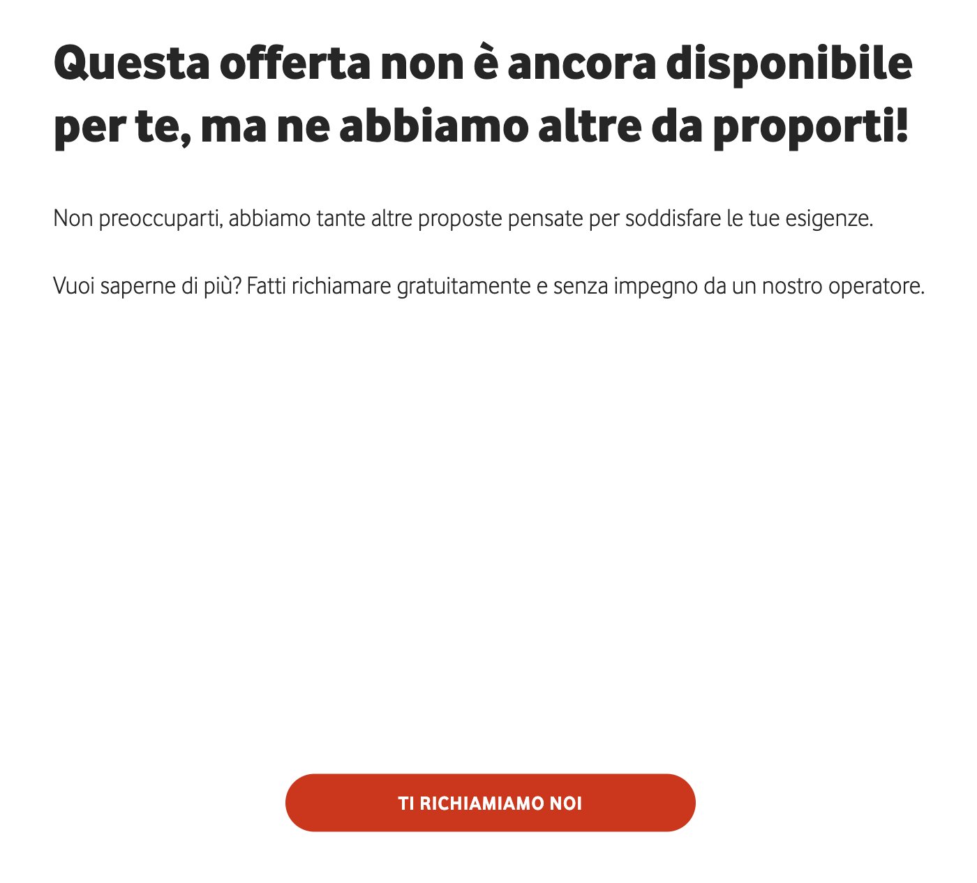 _Lex_ Ah ecco 😅 Hai provato a selezionare "Ti richiamiamo noi"? Magari sanno dirti qualcosa di più, soprattutto se l'offerta è attivabile ma non disponibile per te oppure qualcos'altro. Comunque puoi valutare anche la Bronze Plus come alternativa: https://privati.vodafone.it/mobile/telefonia-mobile/vodafone-bronze-plus L'unico problema è che è disponibile solo in portabilità, per cui dovresti farti un nuovo numero (magari Iliad) prima di procedere.