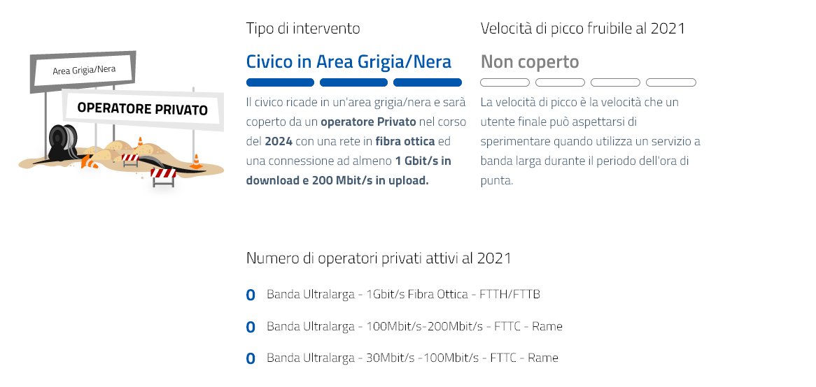 il sito BUL indica solo delle previsioni ed il fatto che il tuo civico rientra sotto investimento privato, quindi quando un operatore (Fibercop probabilmente) deciderà di coprirlo allora verrà coperto;