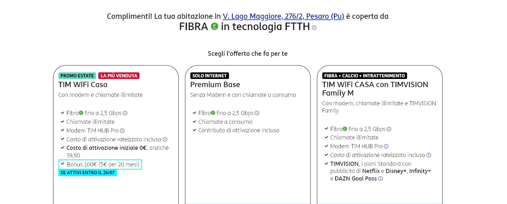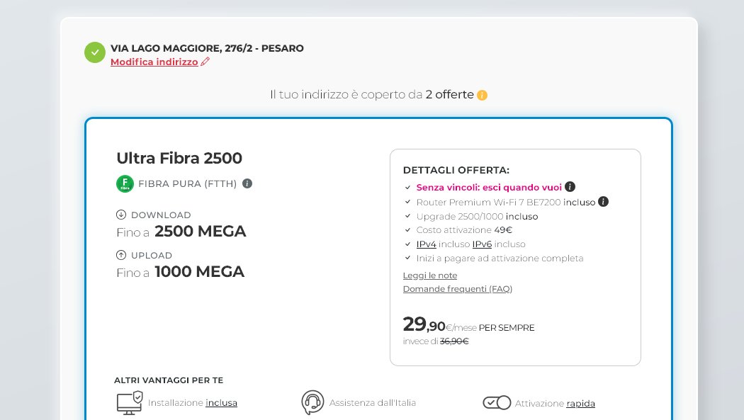 Non so che copertura tu veda ma di FTTH nemmeno una traccia, il civico 276 è coperto solo da FTTE 100M erogata dalla centrale PESAITAZ a circa 240metri.