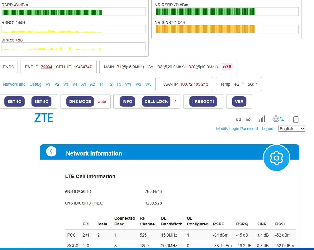 nel frattempo l'889 si è connesso ad un'altra BTS, più lontana, credo, la ID/Cell ID 76034/43, gGuardia S., che non ha la B7, ma anche lei in n78 5G... allego la cattura... speedtest sempre bassi, però, anche se segnale come da hack allegato...