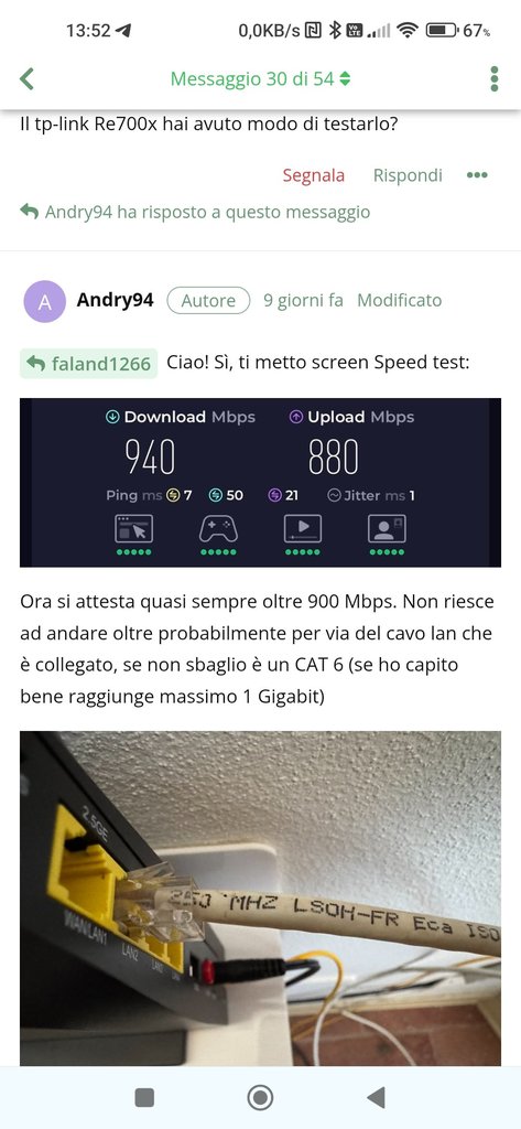 Ti allego screenshot di altra discussione in cui un altro utente che lo ha utilizzato raggiungeva velocità Gigabit piena...