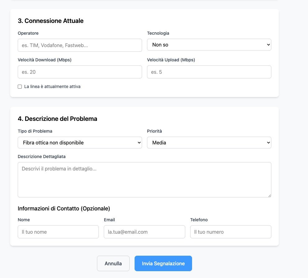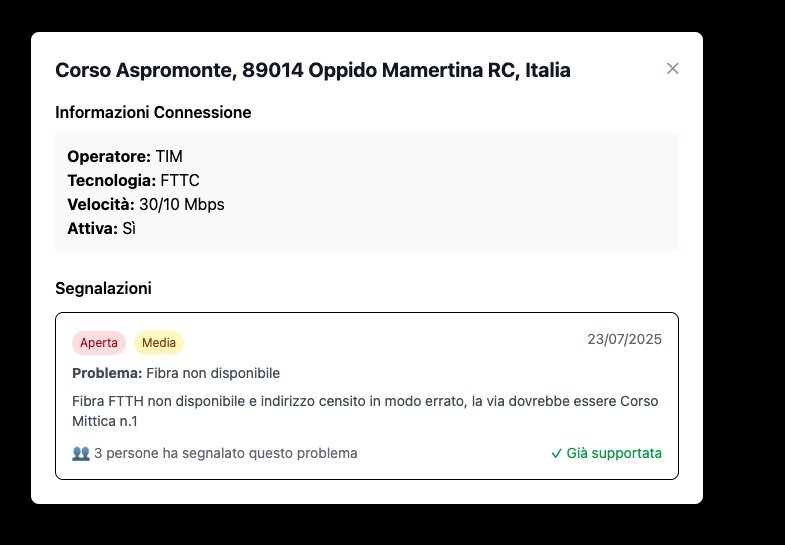 Potrebbe essere una buona idea creare un portale con una mappa in cui gli utenti che hanno problemi con attivazioni, disservizi, indirizzi fantasma, indirizzi in cui il vicino ha la fibra e loro no, possano lasciare un "marker" con scritto cosa succede, cosa notano, cosa vorrebbero ecc?